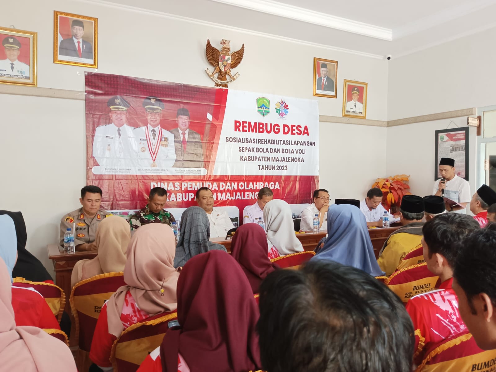 Majalengka – Sesuai dengan arahan dari Kapolres Majalengka Polda Jabar AKBP Indra Novianto,S.I.K.,M.Si., CPHR., melalui Kapolsek Cikijing Polres Majalengka Polda Jabar AKP Rudy Djunardi M, S.H., M.H. bersama Bhabinkamtibmas Bripka Harry menghadiri rembug Desa mengenai sosialisasi rehabilitasi lapangan sepak bola dan bola voli Kabupaten Majalengka 2023 dalam program padat karya tunai / PKT dari dinas pemuda dan olahraga Kabupaten Majalengka yang bertempat di Aula Kantor Desa Sunalari Kecamatan Cikijing, Kabupaten Majalengka. Kamis (02/11/2023).