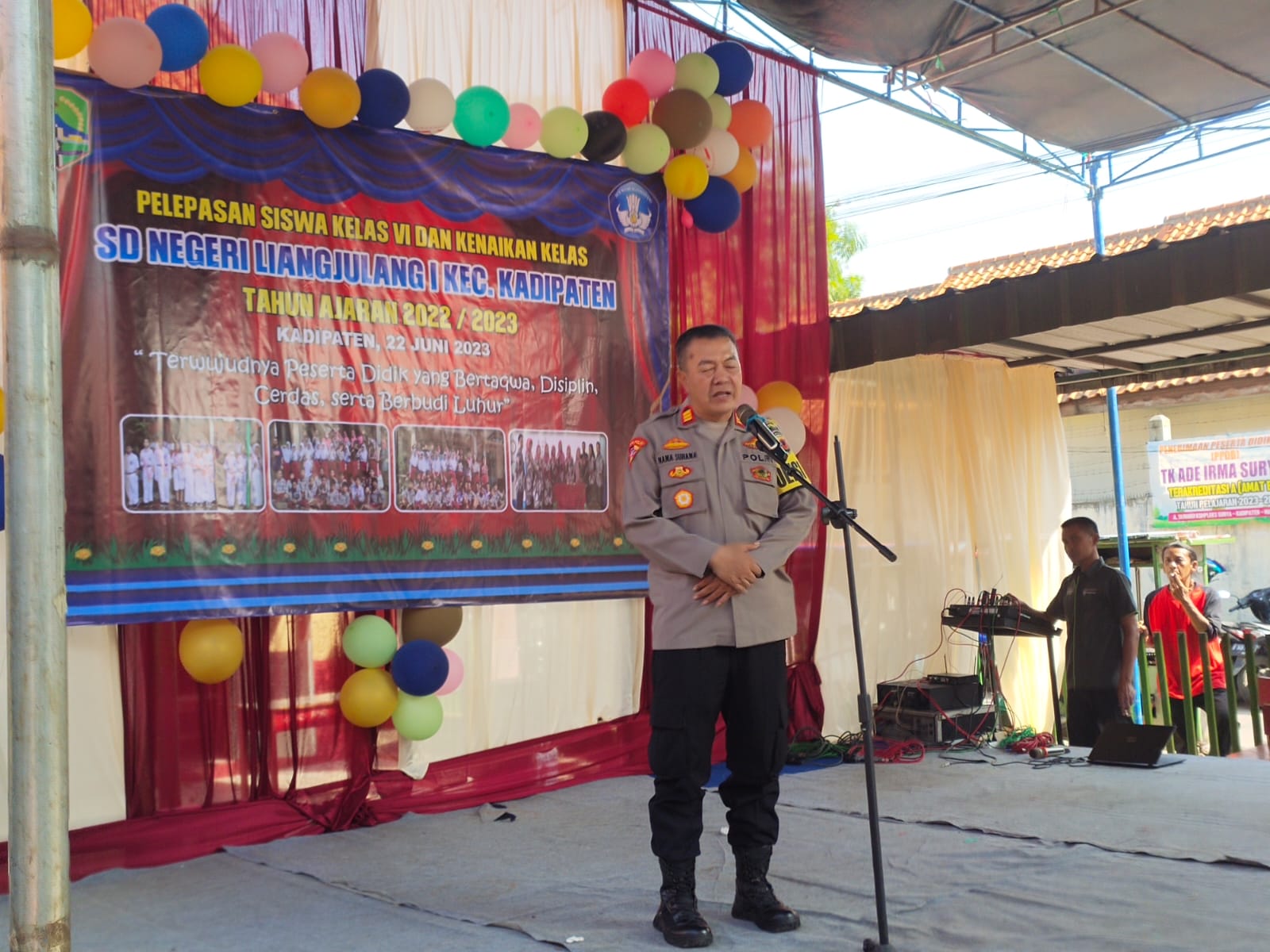 Majalengka – Kapolsek KDP Polres Majalengka Polda Jabar AKP Nana Suhana menghadiri acara Paturay Tineung (perpisahan) Kelas VI SDN Liangjulang I Kabupaten Majalengka. Jumat (23/06/2023).