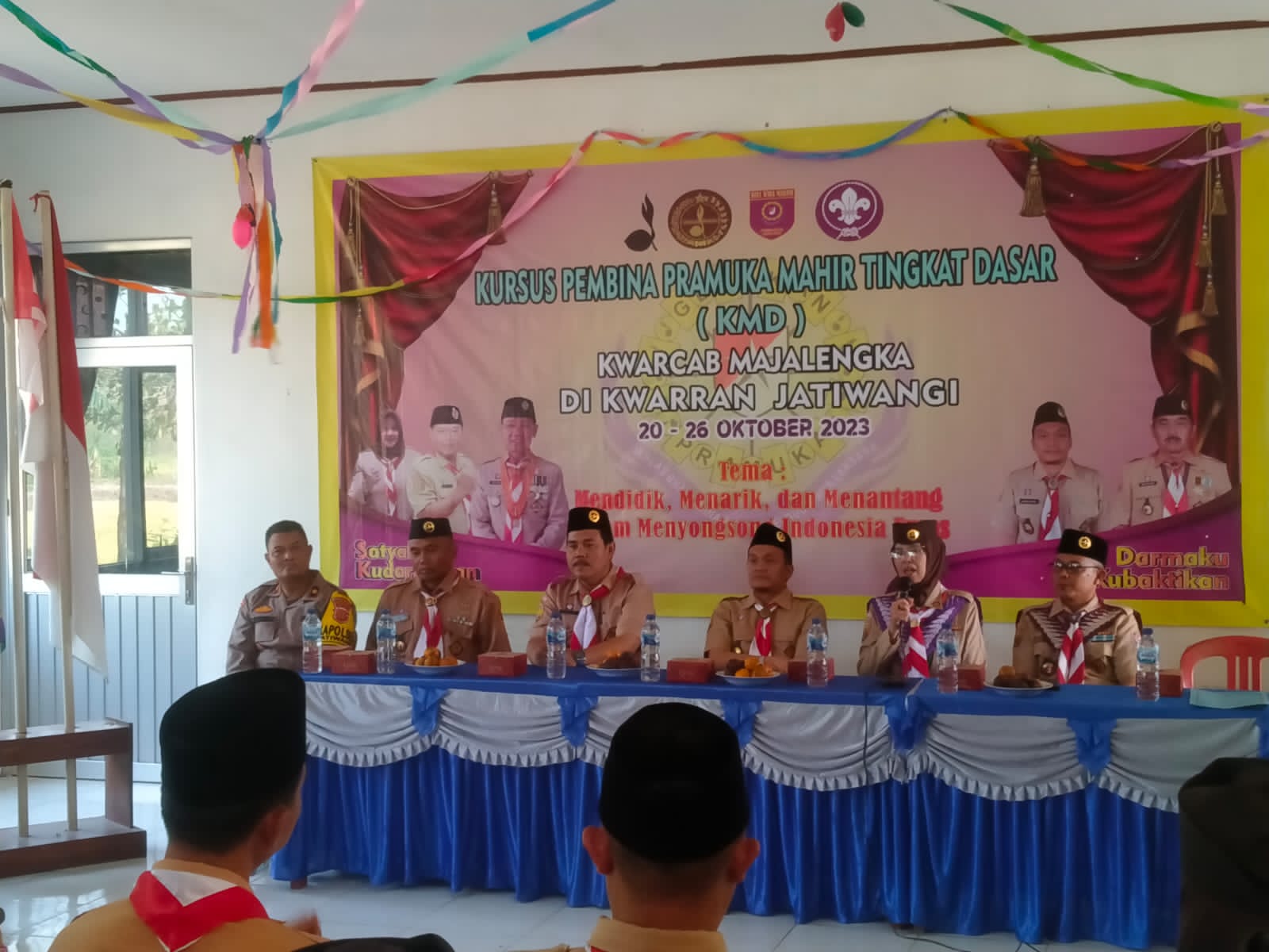 Kapolres Majalengka Polda Jabar AKBP Indra Novianto,S.I.K.,M.Si.,CPHR. melalui Kapolsek Jatiwangi Kompol Endang Kusnandar, SH, MH menyampaikan “diucapkan selamat kepada para peserta Kursus Pembina Pramuka Mahir Tingkat Dasar (KMD), Semoga dengan diadakannya kegiatan ini peserta menjadi pribadi yang berkarakter, berakhlak terpuji, mandiri, semangat bekerja keras dan disiplin”