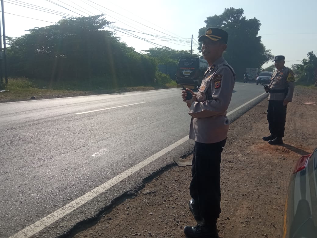 Anggota Personil Polsek Jatiwangi digelar di sepanjang Jalan Bandung – Cirebon Wilayah Hukum Polsek Jatiwangi Polres Majalengka untuk melakukan pengamanan jalur.