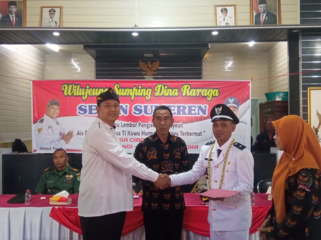 Acara diawali dengan menyanyikan lagu Indonesia Raya dan selanjutnya pembacaan dan penandatanganan Berita Acara Serah Terima dilanjutkan pembacaan aset sah desa Ciborelang.