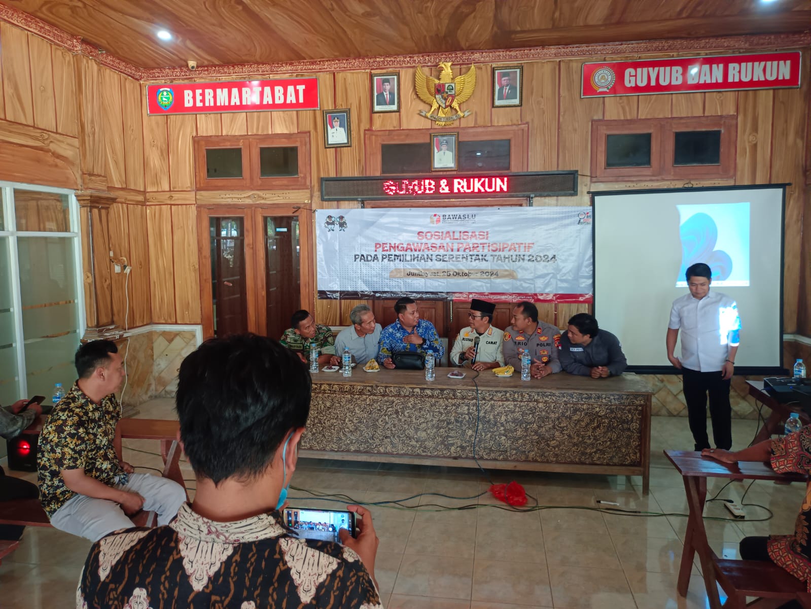 Kegiatan sosialisasi ini dihadiri oleh Forum Koordinasi Pimpinan Kecamatan (Forkopimcam), Ketua Panwaslu Kecamatan Juntinyuat, Syifaush Syarif, dan Bawaslu Kabupaten Indramayu, Dede Irawan, S.H. Selain itu, acara ini juga diikuti oleh tokoh masyarakat, para kepala desa (Kuwu), dan Kepala UPTD wilayah setempat, dengan total partisipan sekitar 30 orang.