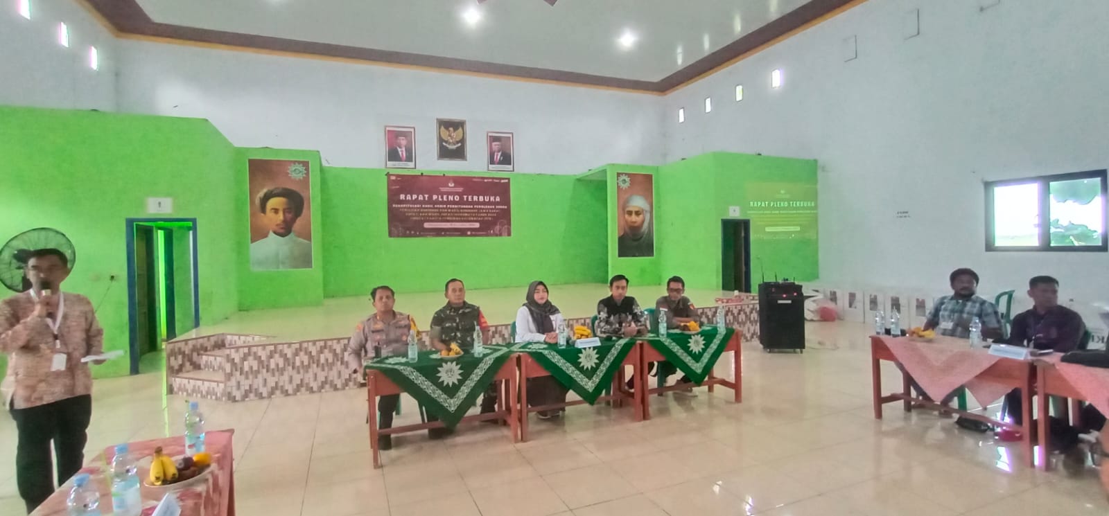 Indramayu – Kapolsek Karangampel, AKP Warmad, S.Pd., menghadiri pembukaan rapat Pleno terbuka rekapitulasi hasil penghitungan perolehan Suara Pemilihan Kepala Daerah (Pilkada) Tahun 2024 yang digelar oleh Panitia Pemilihan Kecamatan (PPK) Karangampel.