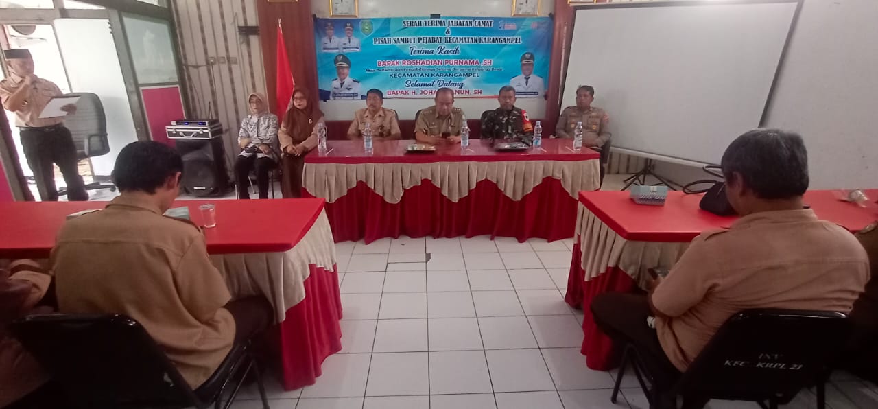 Acara tersebut menandai peralihan jabatan dari Camat lama, Roshadian Purnama, S.H., kepada Camat baru, H. Johar Manun, S.H.