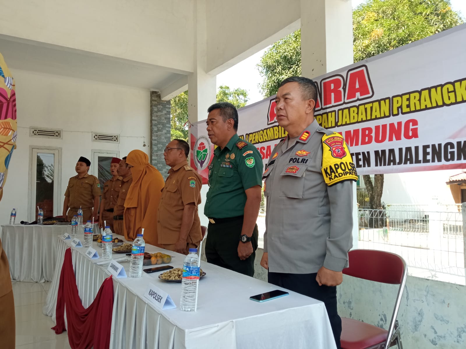 Majalengka,- Kapolres Majalengka Polda Jabar AKBP Indra Novianto,S.I.K.,M.Si melalui Kapolsek Kdp AKP Nana Suhana menghadiri kegiatan acara Pelantikan dan Pengambilan Sumpah Jabatan Perangkat Desa Karangsambung Kecamatan Kdp Kabupaten Majalengka. Senin (25/9/2023).
