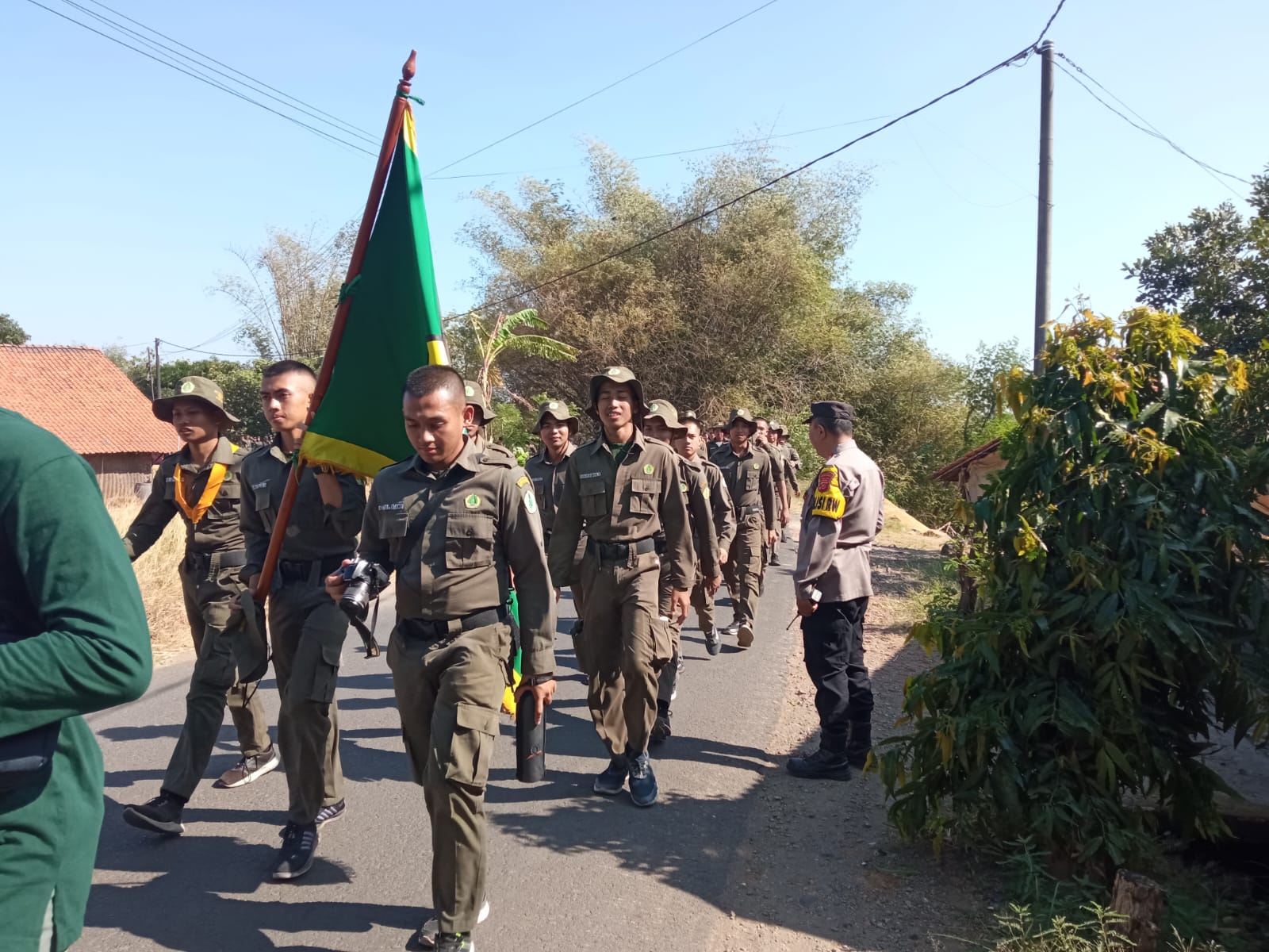 Kapolsek Kdp AKP Nana Suhana di dampingi PS. Panit Yanmin Intelkam Polsek Kdp BRIPKA Mashuri melaksnakan monitoring dan pengamanan kegiatan Long March SMK Kehutanan Kdp Kabupaten Majalengka.