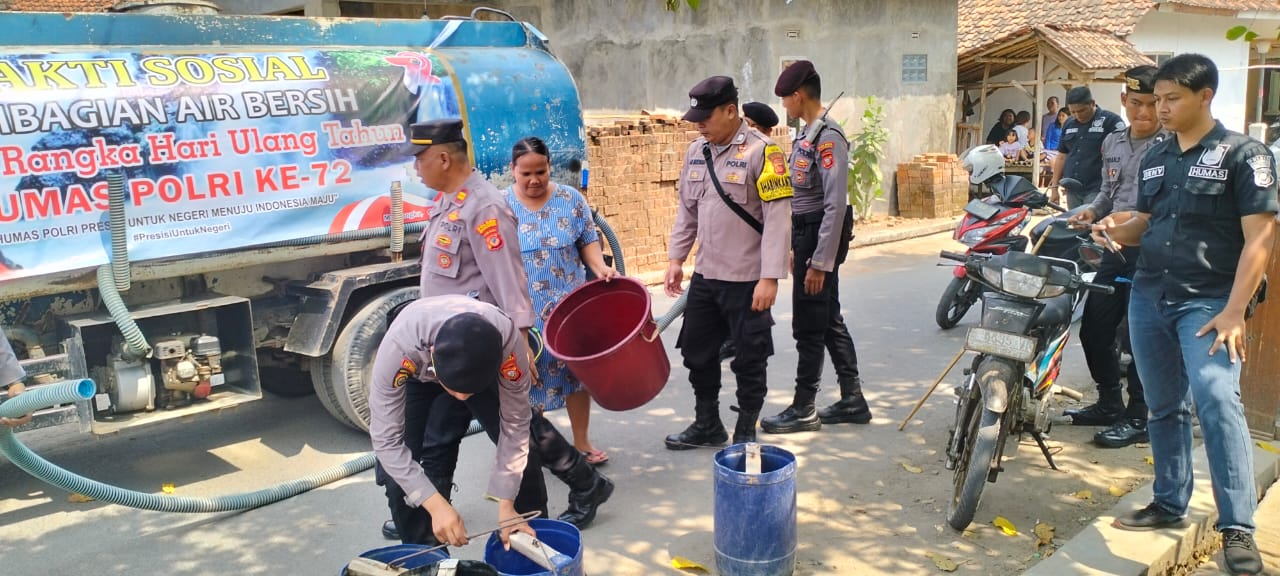 Majalengka – Sesuai arahan dari Kapolres Majalengka Polda Jabar AKBP Indra Novianto,S.I.K.,M.Si., CPHR melalui Kapolsek Kdp Polres Majalengka Polda Jabar AKP Nana Suhana monitoring kegiatan sosial berupa pembagian air bersih oleh Sie Humas Polres Majalengka dalam rangka HUT Humas Polri Ke 72. Rabu (4/10/2023).