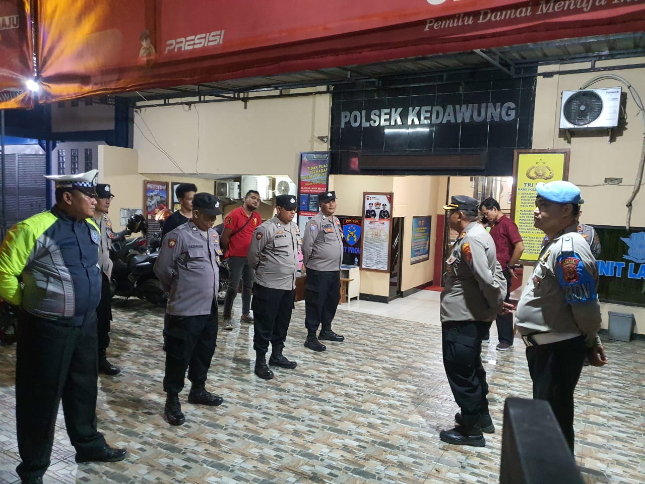 “Saya memberikan apresiasi kepada Kapolsek Kedawung yang terus semangat memimpin pelaksanaan apel kesiapan antisipasi kerawanan pada malam takbiran, beserta anggota polsek kedawung”.