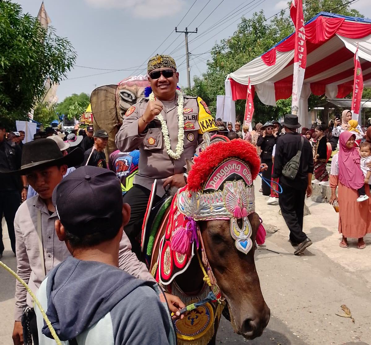 Kapolsek Kroya Indramayu IPTU H. Raswin Ikuti Pawai Karnaval dalam Rangka Acara Sedekah Bumi di Desa Tanjungkerta