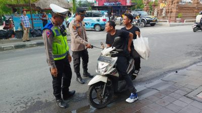Kapolsek Kuta Utara AKP Muhammad Risky Fernandez S.H.,S.I.K dampingi Kapolres Badung AKBP Teguh Priyo Wasono memimpin kegiatan razia pelanggar lalu lintas di Simpang Deus, Jalan Batu Bolong, Desa Canggu, Kecamatan Kuta Utara, Kabupaten Badung. Rabu (3/1) pukul 16.00 Wita.