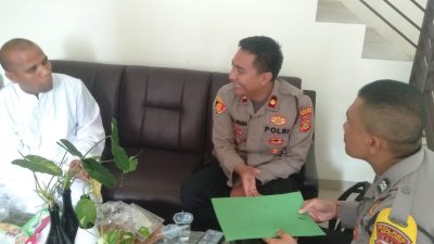Selain bertemu Jemaat Kapolsek menyerahkan bingkisan tali kasih kepada pihak Gereja Paroki Roh Kudus Babakan Canggu yang di terima Romo Alfridus Bere Lele, PR,