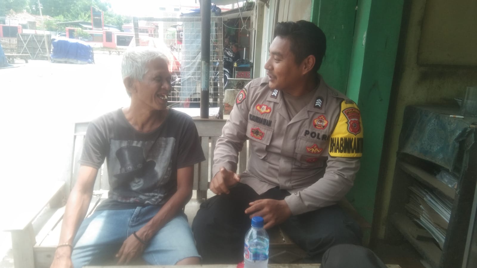 Dalam kunjungan tersebut, Bhabinkamtibmas berbincang akrab dengan warga.