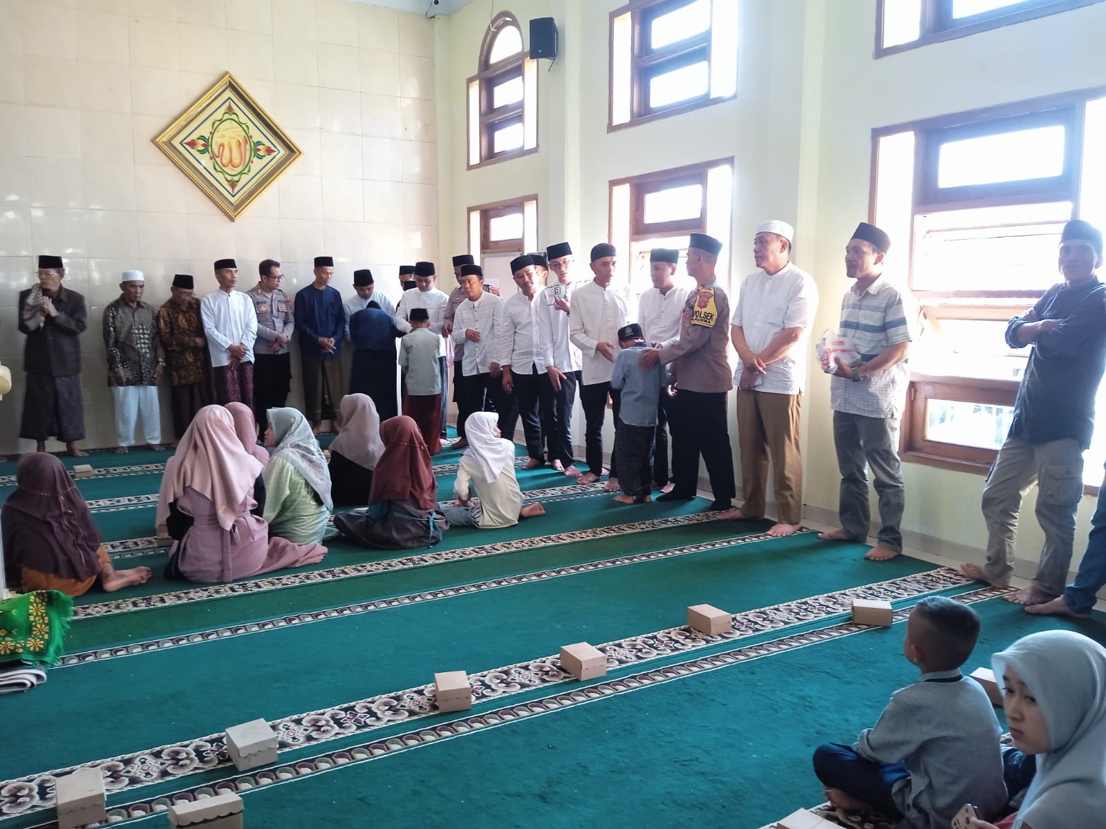 Majalengka, Kapolsek Malausma, Iptu Yondri, S.Sos, M.H., bersama Bhabinkamtibmas Bripka Nena Sugiatna mendampingi Pemerintahan Desa Lebakwangi dalam pemberian santunan kepada anak yatim piatu yang bertempat di Masjid Desa Lebakwangi, Kecamatan Malausma, Kabupaten Majalengka, pada Rabu (17/07/2024). Kegiatan ini dilakukan dalam upaya menjalin silaturahim dengan aparat desa dan warga masyarakat, hingga tercipta harkamtibmas menjelang Pilkada 2024.