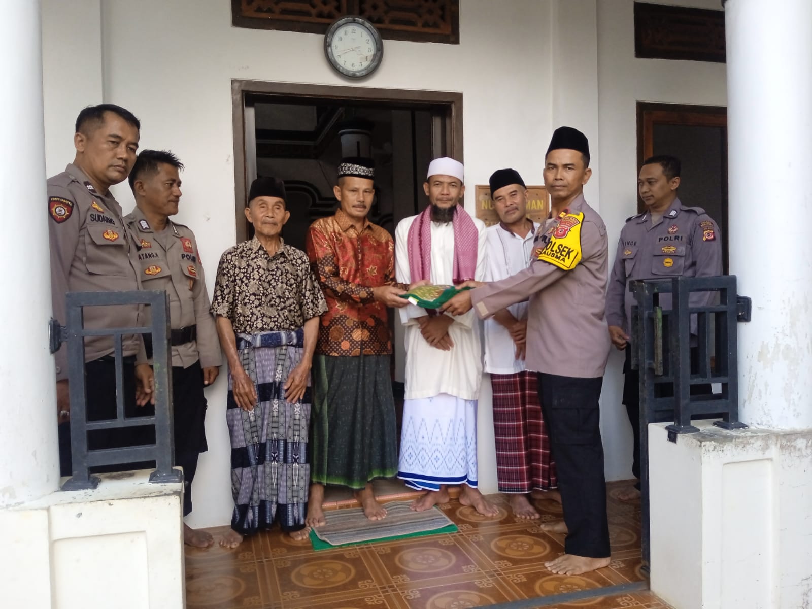 Majalengka, – Kapolsek Malausma Iptu Yondri,S.Sos,M.H beserta Kanit Binmas Bripka Ence Hasanudin dan anggota polisi turut serta dalam kegiatan bakti sosial membersihkan dan memberikan bantuan alat kebersihan serta sajadah di Mesjid Nur Rohman, Blok Sabtu, Desa Werasari, Kecamatan Malausma, Kabupaten Majalengka, Jumat kemarin.