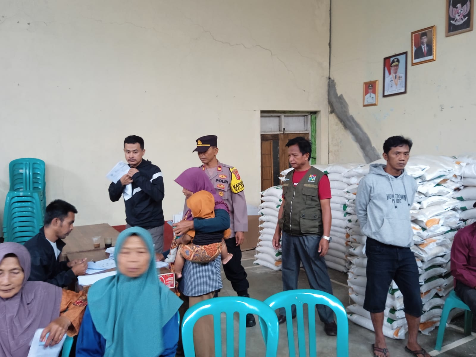 Kapolsek Malausma Monitoring Penyaluran Bantuan Pangan Cadangan Beras Pemerintah Tahap 6 di Desa Banyusari mjl