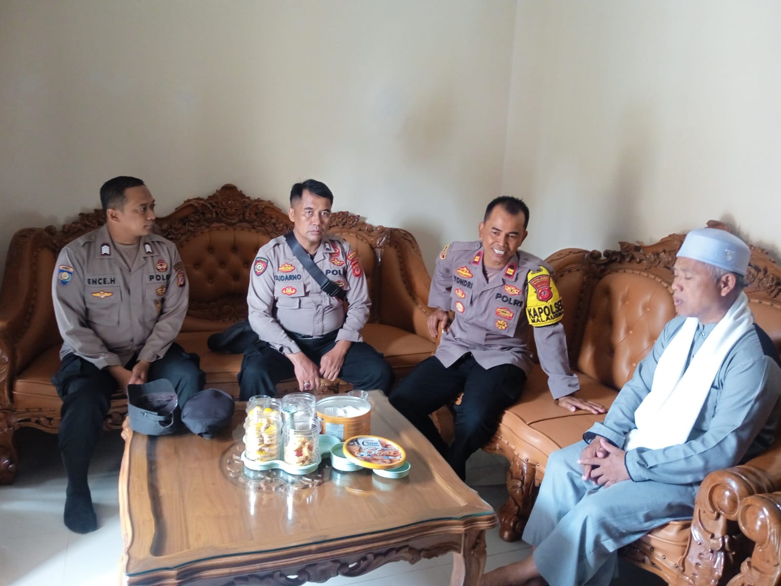 Majalengka, – Kapolsek Malausma, IPTU Yondri, S.Sos., M.H., bersama anggota melaksanakan silaturahmi dengan tokoh agama KH Obing, pimpinan Pondok Pesantren Manarulhuda, yang berada di Blok Cipetey, Desa Ciranca, Kecamatan Malausma, Kabupaten Majalengka. Dalam pertemuan tersebut, Kapolsek mengajak KH Obing dan komunitas pesantren untuk turut serta dalam menjaga Pemeliharaan keamanan dan ketertiban masyarakat (Harkamtibmas) menjelang Pilkada di Kabupaten Majalengka, khususnya di wilayah hukum Polsek Malausma.Rabu (12/6/2024).