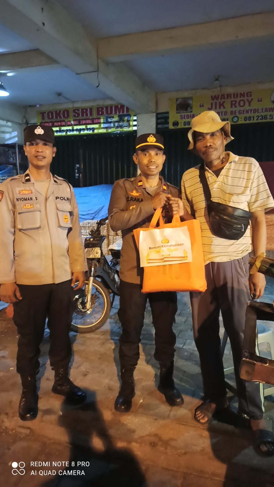 Kali ini pemberian bantuan paket sembako tersebut disalurkan oleh Perwira Pengawas IPTU Cok Gede Raka, S.H., bersama anggota patroli.