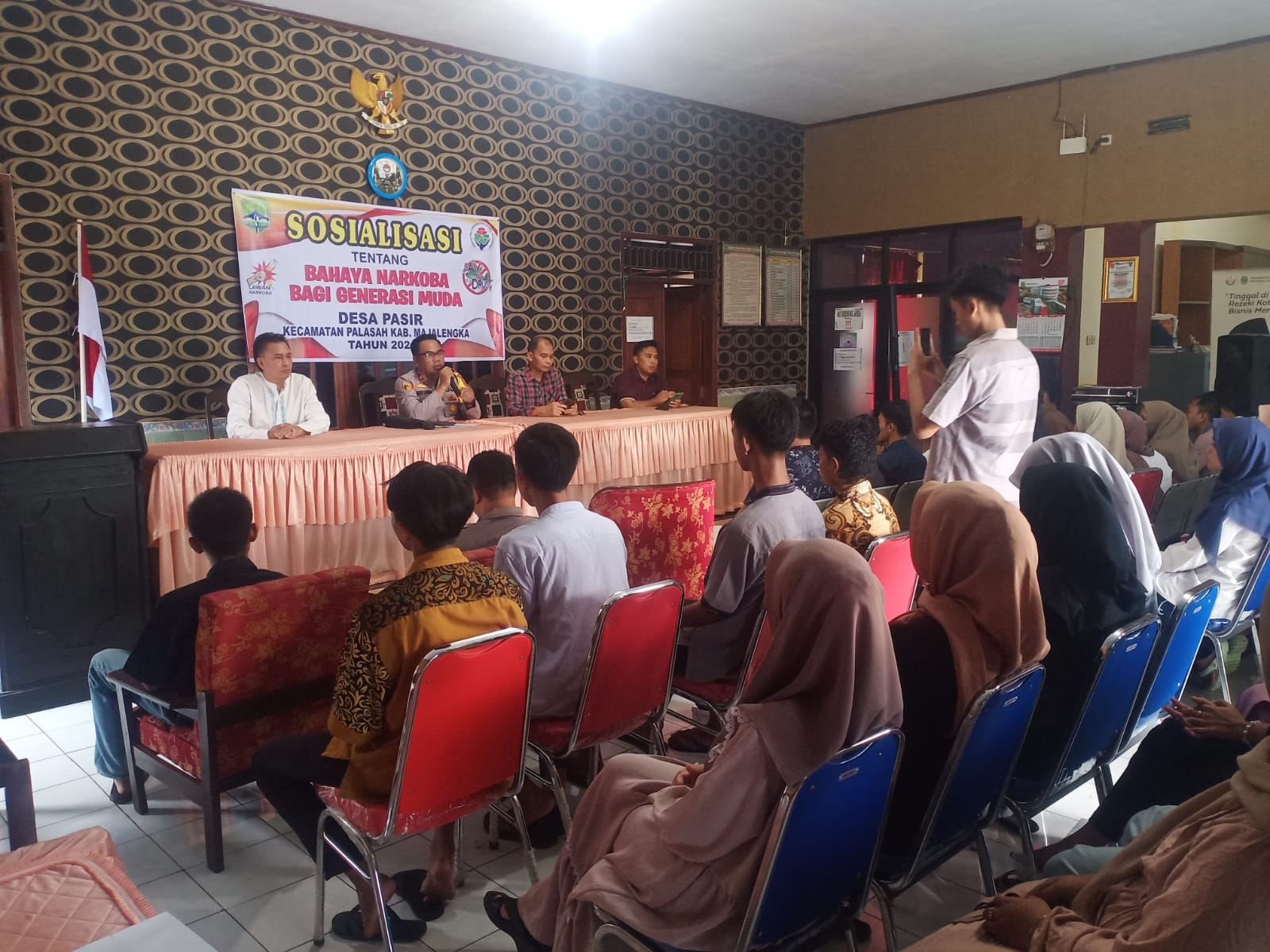 Majalengka – Kapolsek Palasah, Iptu Heru Samsul Bahri, SE.,MM, memberikan arahan dan pembinaan kepada para pemuda Karang Taruna di Desa Pasir, Kecamatan Palasah, Kabupaten Majalengka. Sabtu (16/3/2024), Dalam kesempatan tersebut, Kapolsek menyampaikan pesan penting tentang bahaya narkoba dan urgensi untuk menjauhinya.