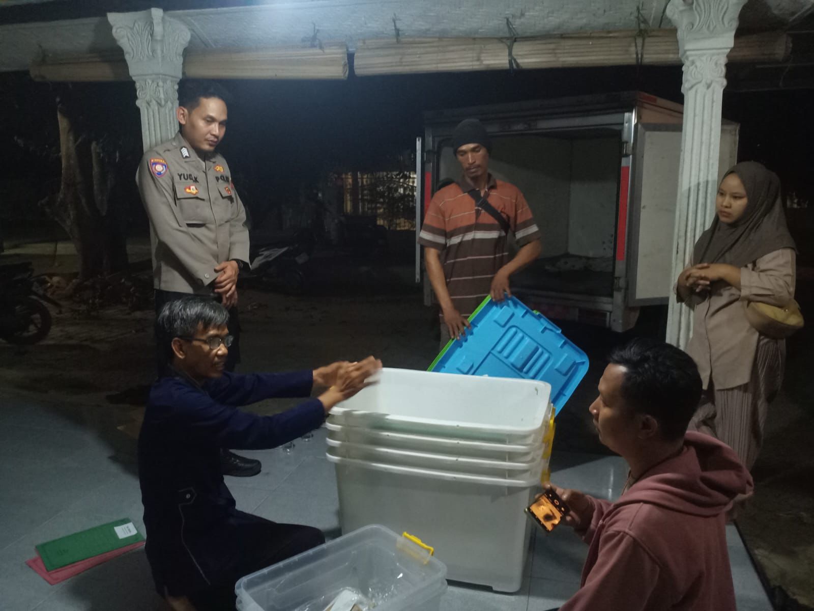 Indramayu – Polsek Pasekan melakukan pengamanan terhadap distribusi logistik Pilkada Serentak Tahun 2024 di Gudang PPK Kecamatan Pasekan, Kabupaten Indramayu, pada Kamis (21/11/2024).