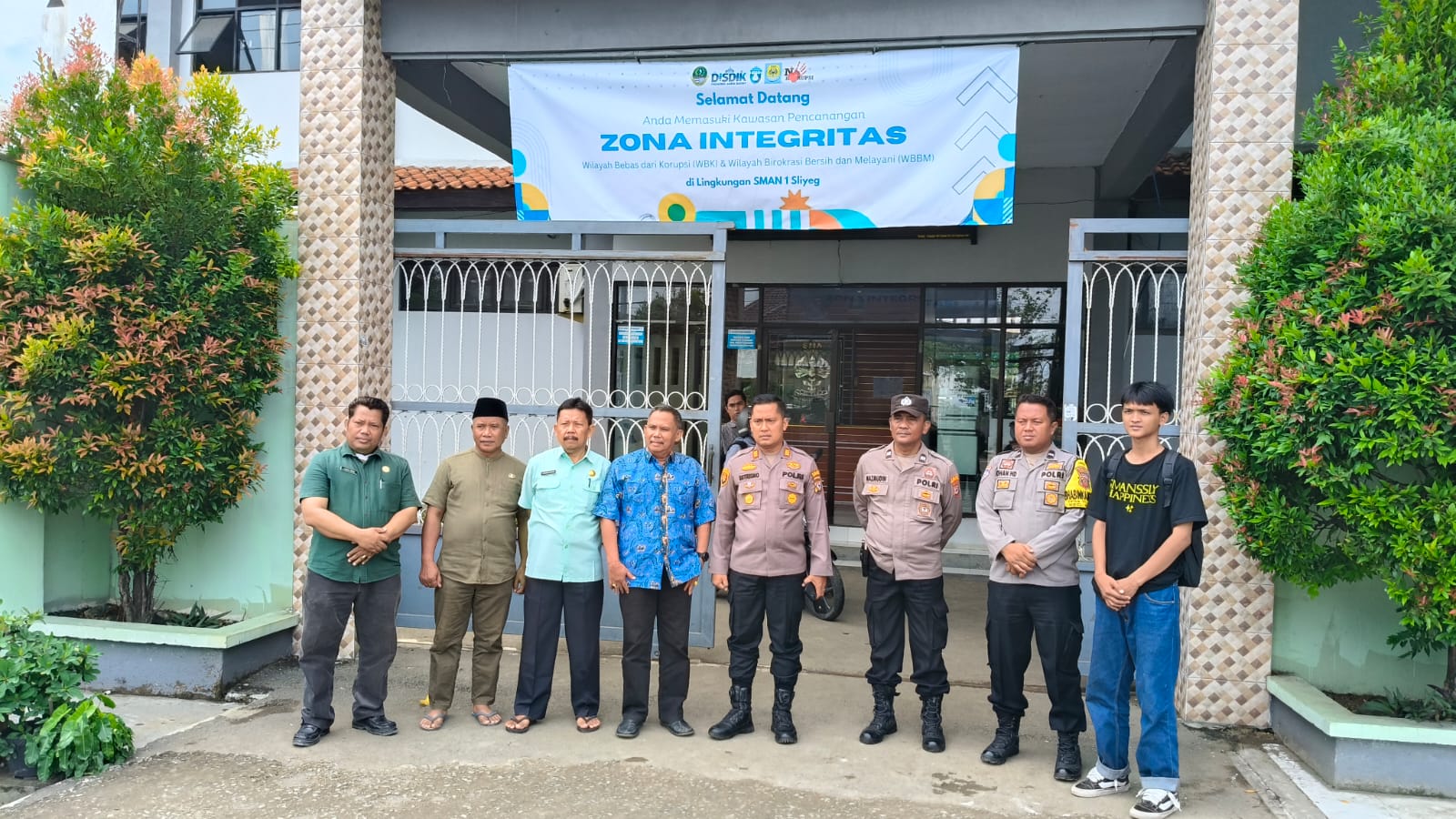 Dalam kegiatan yang berlangsung di ruang guru, Kapolsek Sliyeg melakukan dialog dengan Kepala Sekolah SMA N 1 Sliyeg, H. Sulkin, beserta staf pengajar dan dihadiri oleh para siswa.