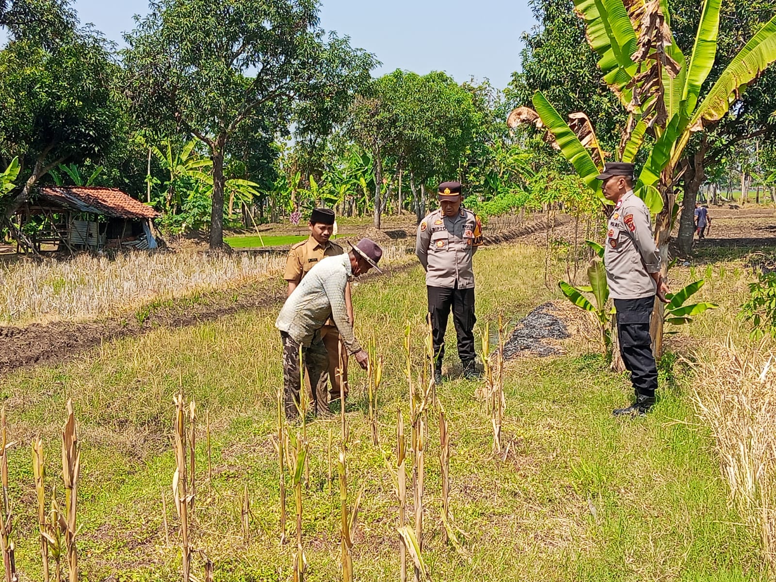 INDRAMAYU – Dalam rangka mendukung program ketahanan pangan nasional, Kapolsek Sukagumiwang Polres Indramayu Polda Jabar AKP Suripto, S.H. bersama anggotanya melaksanakan pengecekan lahan kebun milik warga yang akan dijadikan lokasi budidaya tanaman jagung di Desa Gedangan, Kecamatan Sukagumiwang, Kabupaten Indramayu, Senin (21/7/2025).
