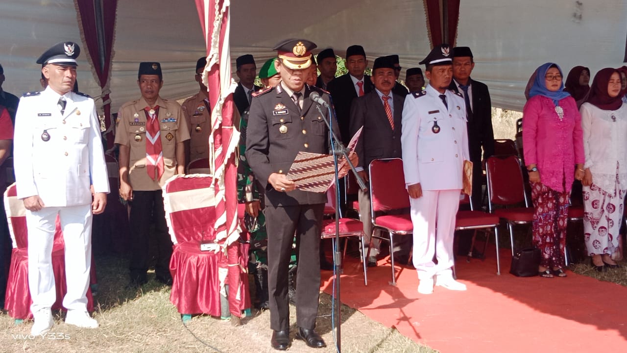 Kapolsek Sukagumiwang Membacakan Teks Pembukaan UUD 1945 Dalam Upacara HUT RI Ke-78