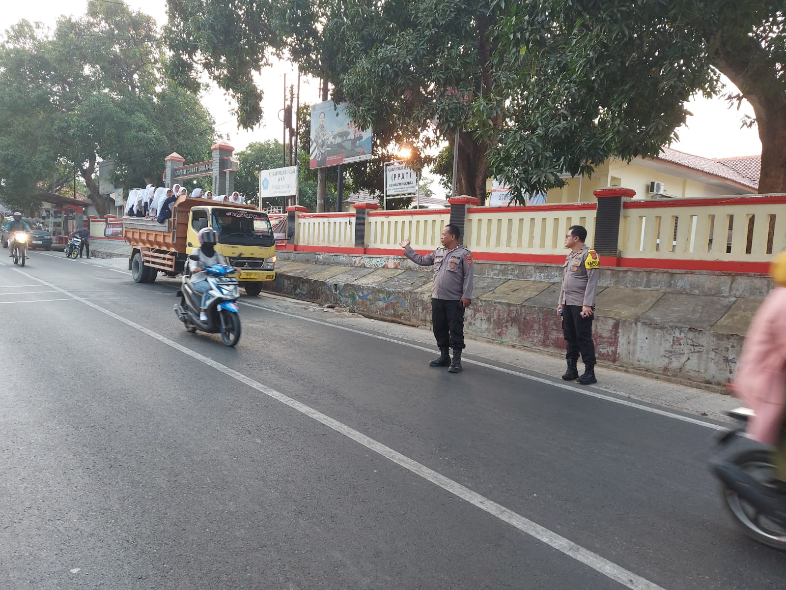 Majalengka, Kapolsek Sukahaji Polres Majalengka AKP Erik Riskandar bersama Kanit Samapta AIPTU Riyana dan Briptu Bayu beserta Tiga Pilar lakukan pengamanan dan pengawalan kegiatan pawai ta aruf dalam rangka hari santri nasional.