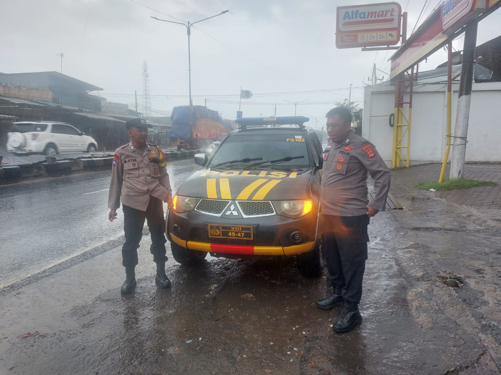 Kehadiran personil Polsek Sukra di lapangan di tengah kondisi cuaca yang kurang menguntungkan ini juga diharapkan dapat memberikan rasa aman dan nyaman kepada masyarakat.