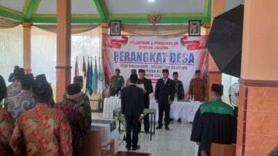 BUSERJATIM.COM || BLITAR – Setelah melalui proses seleksi dan tahapan ujian, perangkat Desa Ringinanom yang baru melaksanakan pelantikan dan pengambilan sumpah jabatan mulai bekerja di bulan Maret tahun 2023 ini. Dengan demikian kita menerima mitra kerja baru yang akan menyongsong dan mengemban tugas dan tanggung jawab kedepan sebagai pelayan masyarakat. Kamis, 9 Maret 2023.