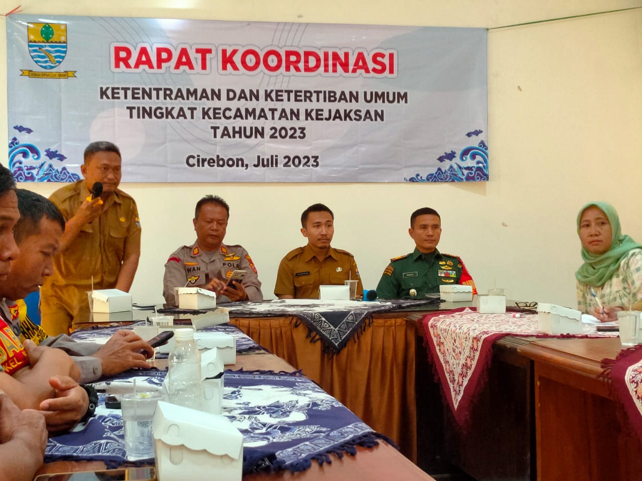 POLRES CIREBON KOTA,- Dalam rangka Ketertiban umum tingkat kecamatan Kejaksan sehingga kondisi proses menjadi pelanggaran ketertiban di wilayah kecamatan Kejaksan harus di minimalisir dari ketentraman masyarakat. Pemerintah Kecamatan Kejaksan Cirebon Kota menggelar Rapat koordinasi ketentraman dan ketertiban umum tingkat kecamatan kejaksan tahun 2023, bertempat di Aula Kantor Kecamatan Kejaksan Cirebon Kota, Kamis (13/07/2023).