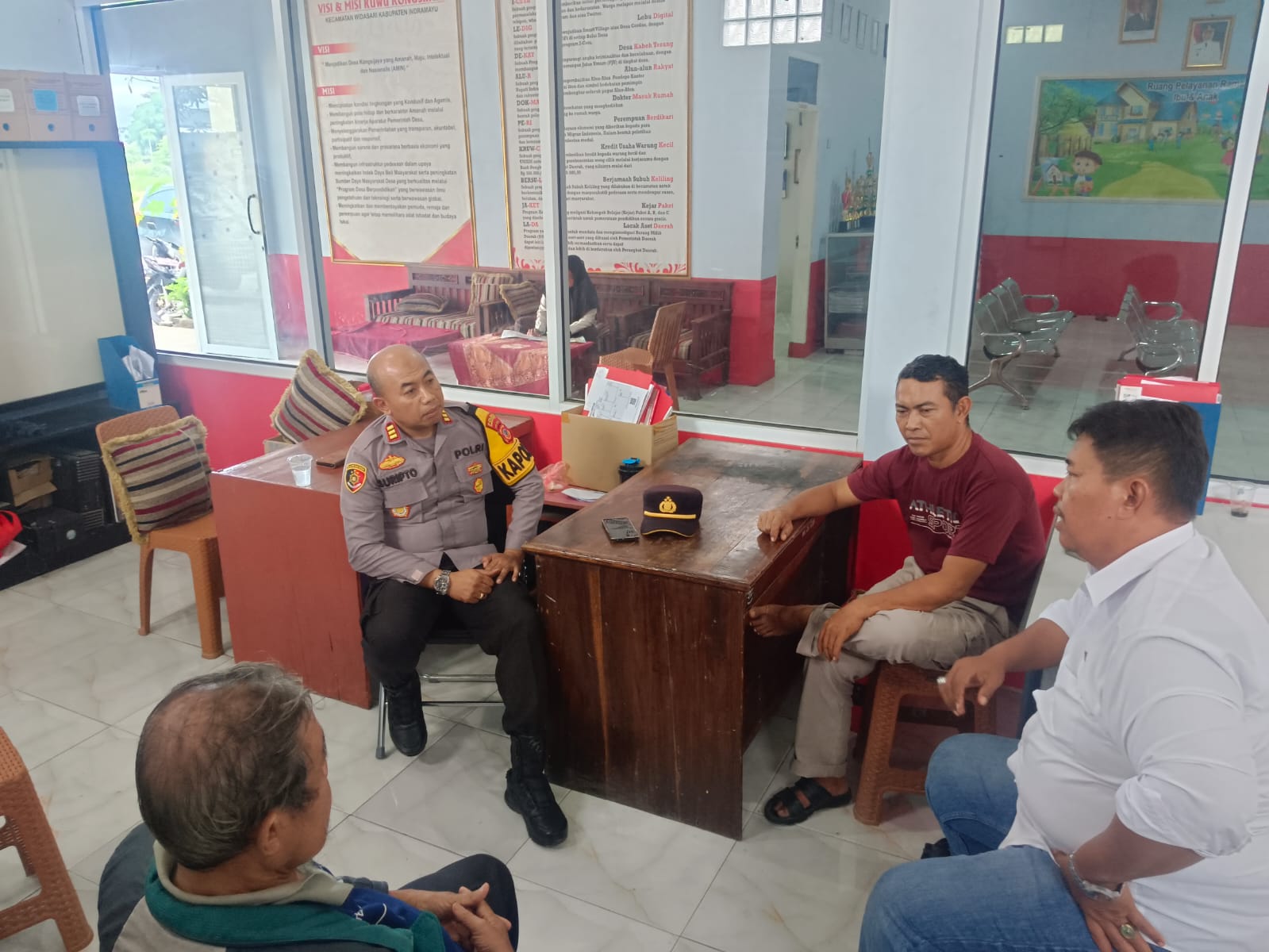 Indramayu – Kapolsek Widasari, AKP Suripto, SH, melakukan silaturahmi kamtibmas di kantor Desa Kongsijaya, Kecamatan Widasari, Kabupaten Indramayu, pada Rabu (4/12/2024).