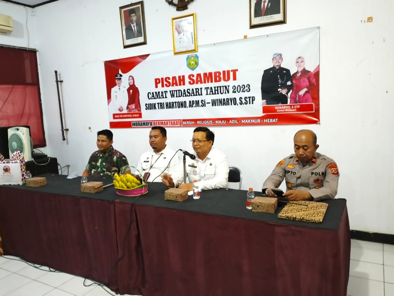 Indramayu, – Kapolsek Widasari Polres Indramayu Polda Jabar, IPTU Suripto S.H, turut hadir dalam kegiatan pisah sambut Camat Widasari dari pejabat lama, Sidik Tri Hartono, A.P, M.Si, kepada pejabat yang baru, Winaryo, S.STP.