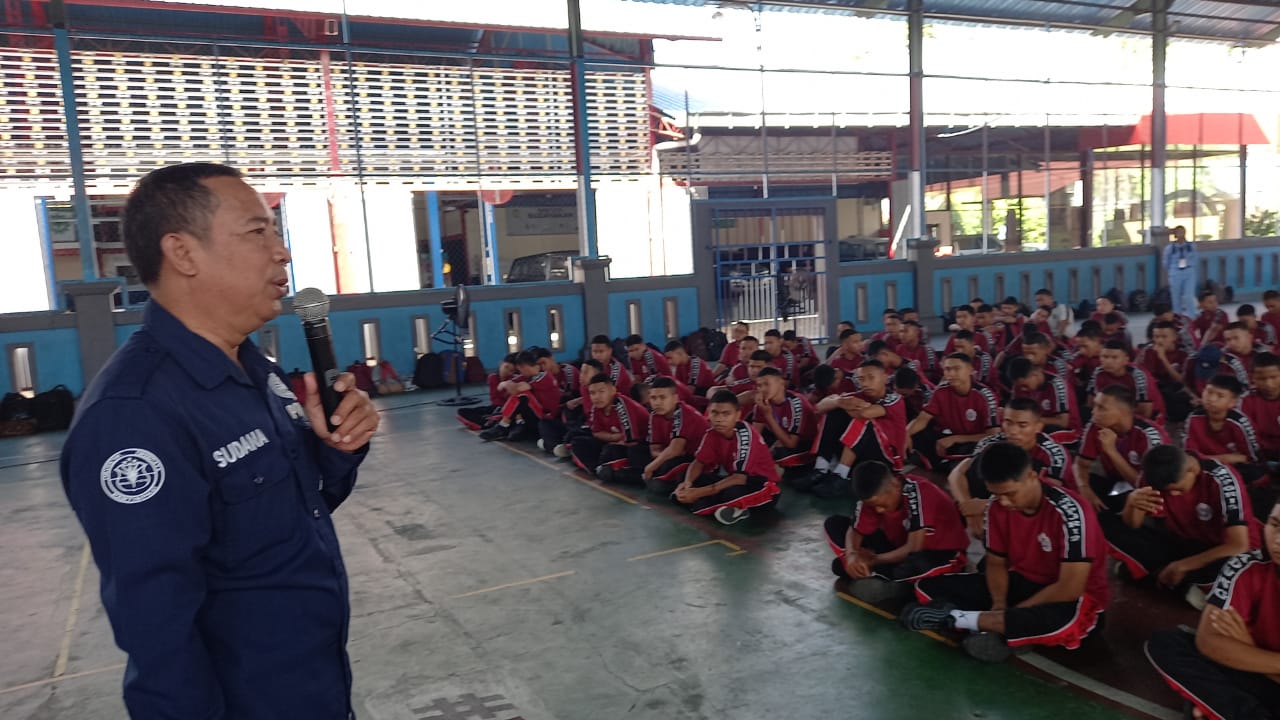 Kasi Humas Polres Badung Iptu I Ketut Sudana,S.H. menjadi narasumber dalam sosialisasi yang dilaksanakan di hadapan ratusan calon siswa SMK, di halaman sekolah SMA PGRI 2 Badung jalan Cempaka Putih No 2 A, Desa Mengwi, Kecamatan Mengwi Kabupaten Badung. Selasa (11/07) pagi pukul 09.00 Wita.