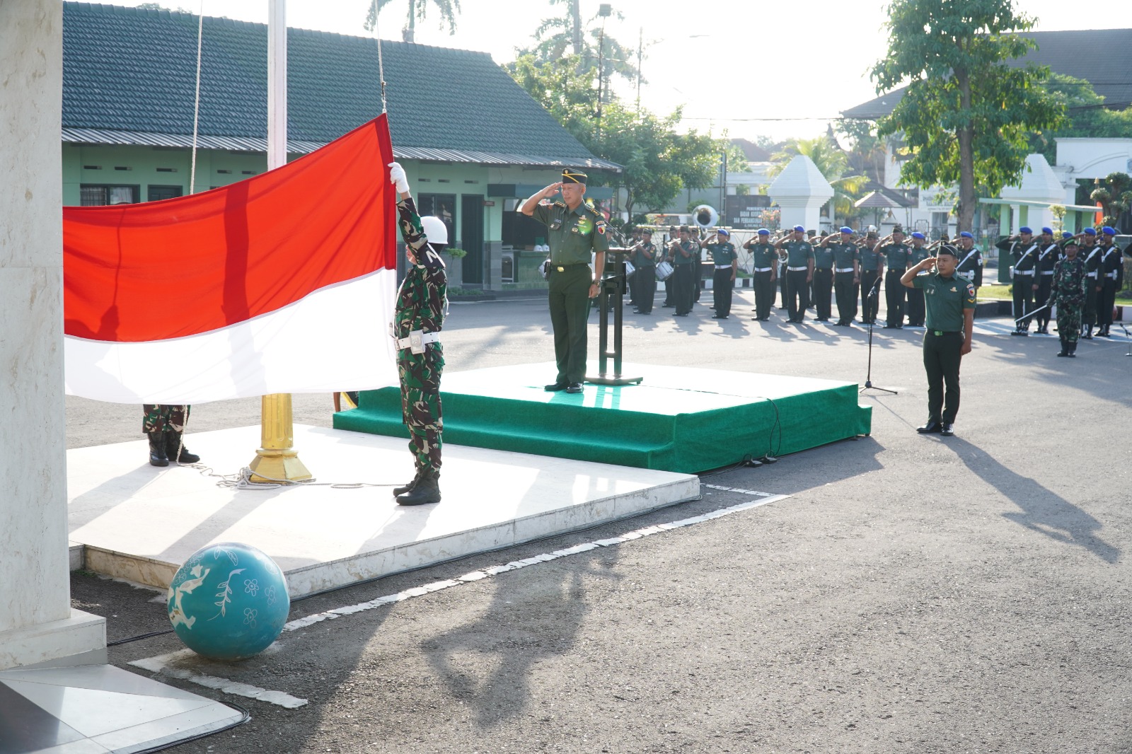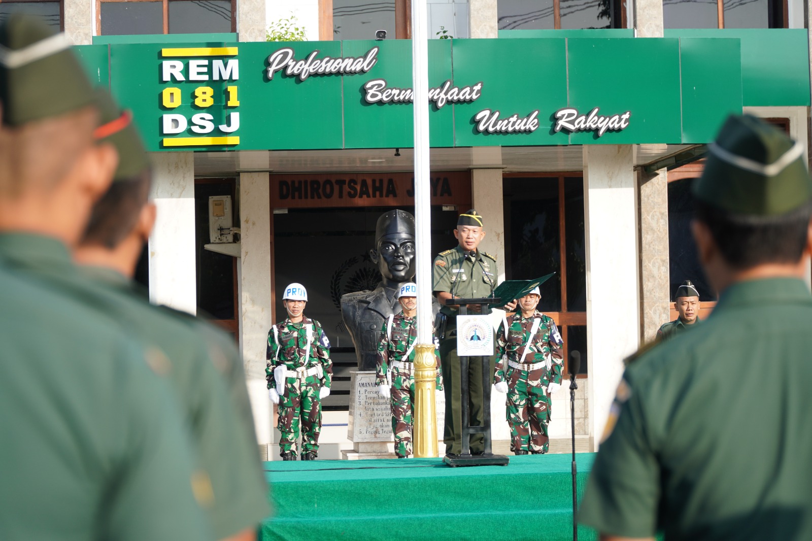 MADIUN,BUSERJATIM.COM GROUP – Guna mewujudkan rasa hormat kepada bendera merah putih serta rasa cinta kepada tanah air, Bangsa dan Negara, Korem 081/DSJ melaksanakan Upacara bendera setiap hari Senin yang bertempat di Halaman Makorem, Jl. Pahlawan No. 50 Kota Madiun, Jawa Timur, Senin (26/06/23).