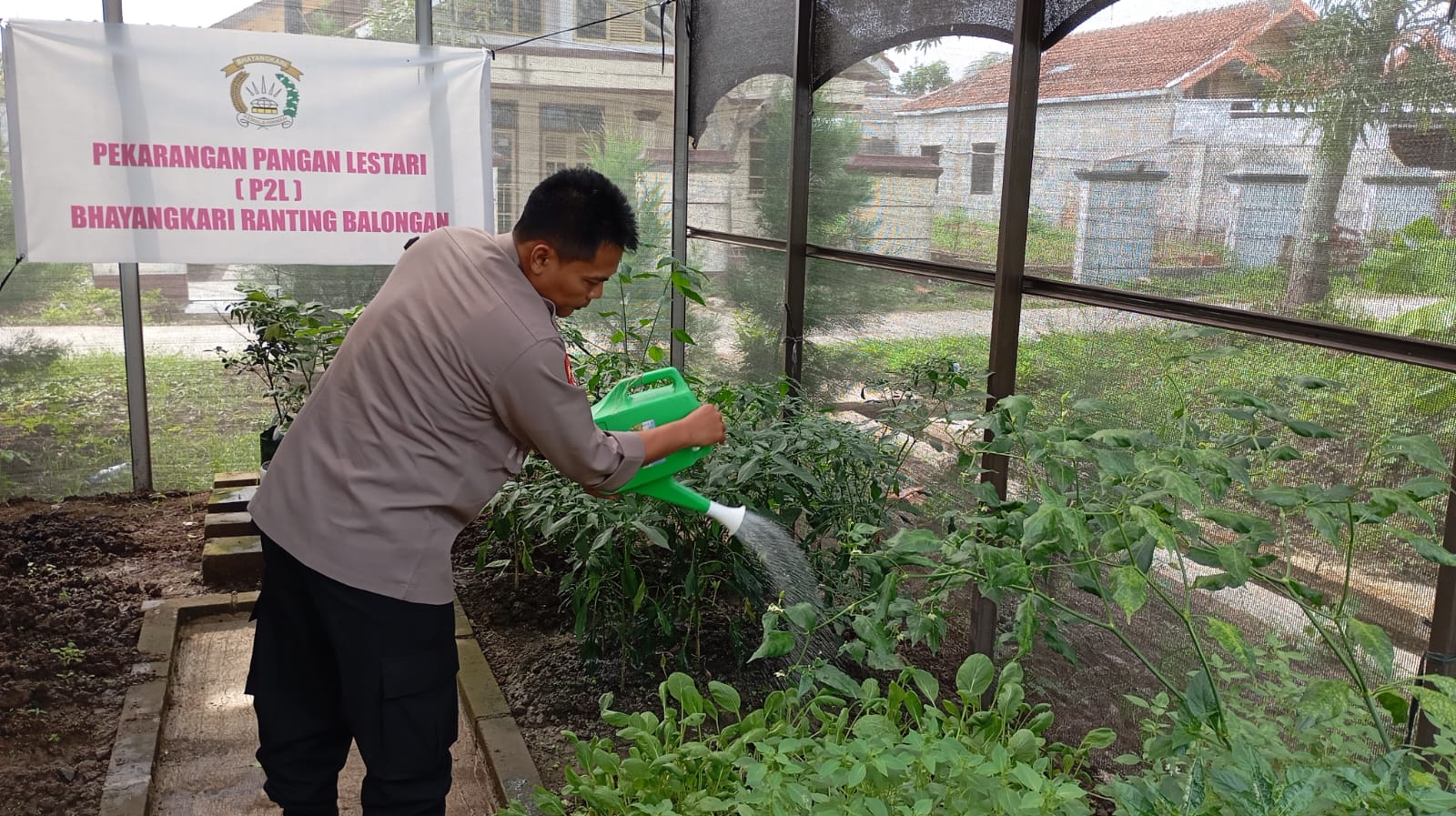 Indramayu – Kasium Polsek Balongan, Polres Indramayu Polda Jabar Aipda Casboni, S.H., merawat berbagai jenis tanaman di Pekarangan Ketahanan Pangan Mako Polsek Balongan, Kabupaten Indramayu, Sabtu (1/2/2025).