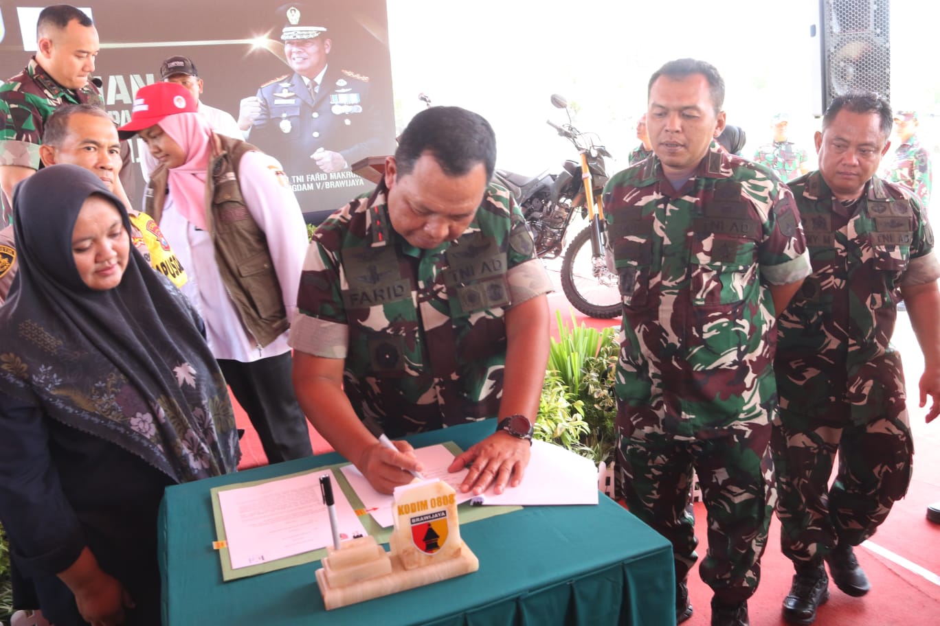 BLITAR,BUSERJATIM.COM GROUP – Kasrem 081/DSJ Letkol Inf Yuli Eko Purwanto menghadiri peresmian Kompi Produksi Ketahanan Pangan di Gunung Nyamil, Desa Ngeni, Kecamatan Wonotirto, Kabupaten Blitar, Rabu (6/12/2023). Peresmian dilakukan oleh Pangdam V/Brawijaya Mayjen TNI Farid Makruf.