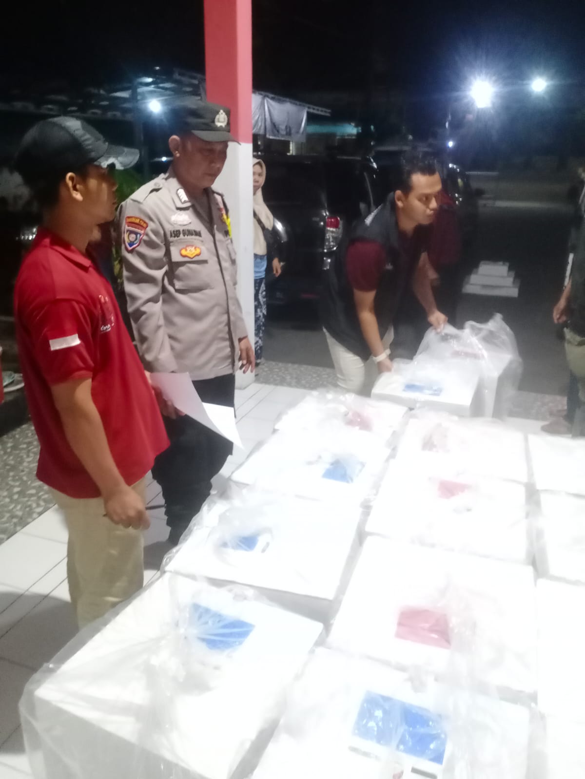 Polsek Gunung Jati Polres Cirebon kota Polda Jabar siagakan personil monitoring pergeseran kotak suara dari TPS KE PPS , Rabu malam (27/02/2024)