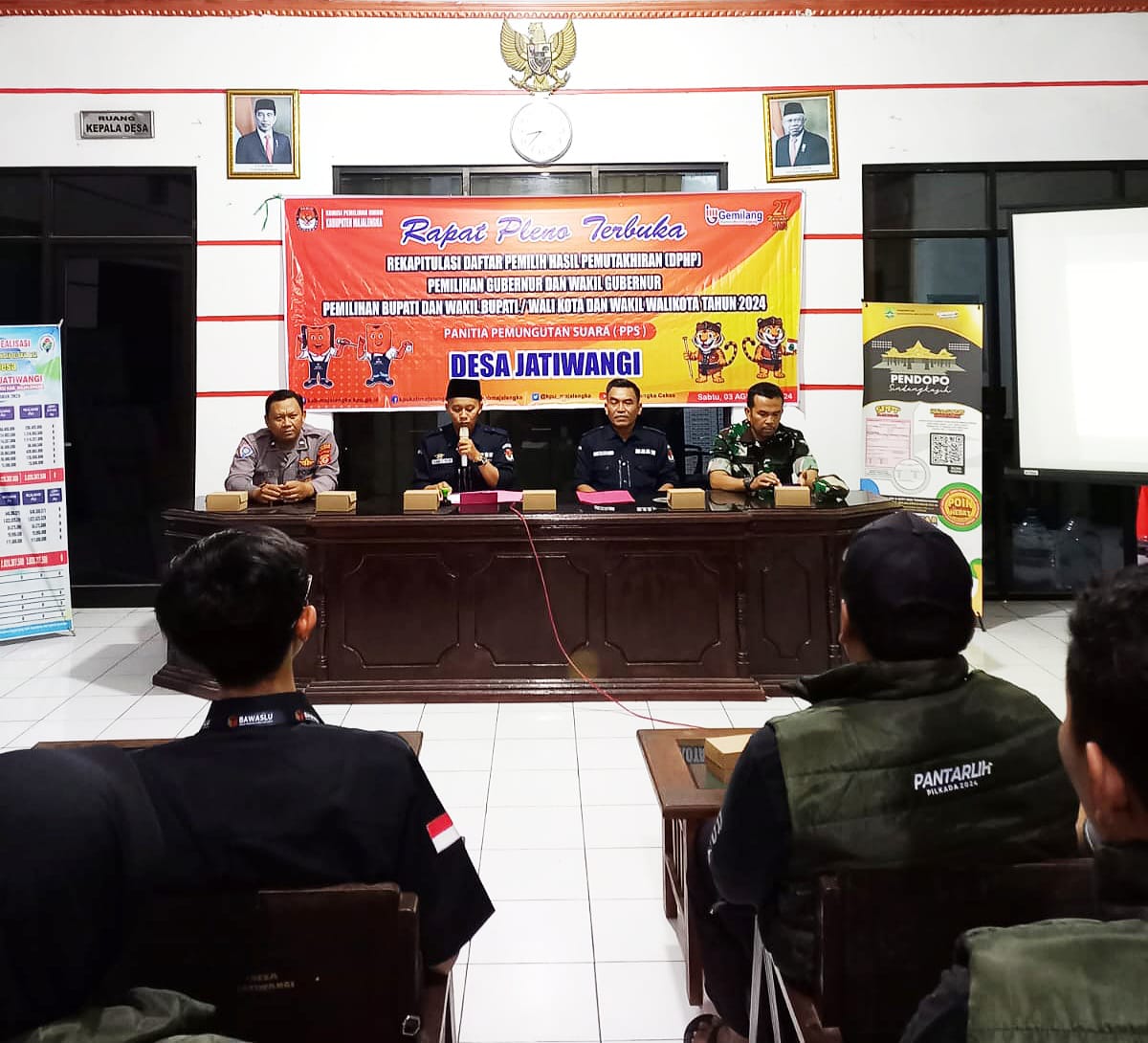 Majalengka – Jajaran Polsek Jatiwangi Polres Majalengka melalui Bhabinkamtibmas menghadiri Rapat Pleno Terbuka Rekapitulasi Daftar Pemilih Hasil Pemutakhiran (DPHP) Pilkada Serentak 2024 di Desa Jatiwangi, Kecamatan Jatiwangi, Kabupaten Majalengka, Sabtu (03/08/2024) malam.