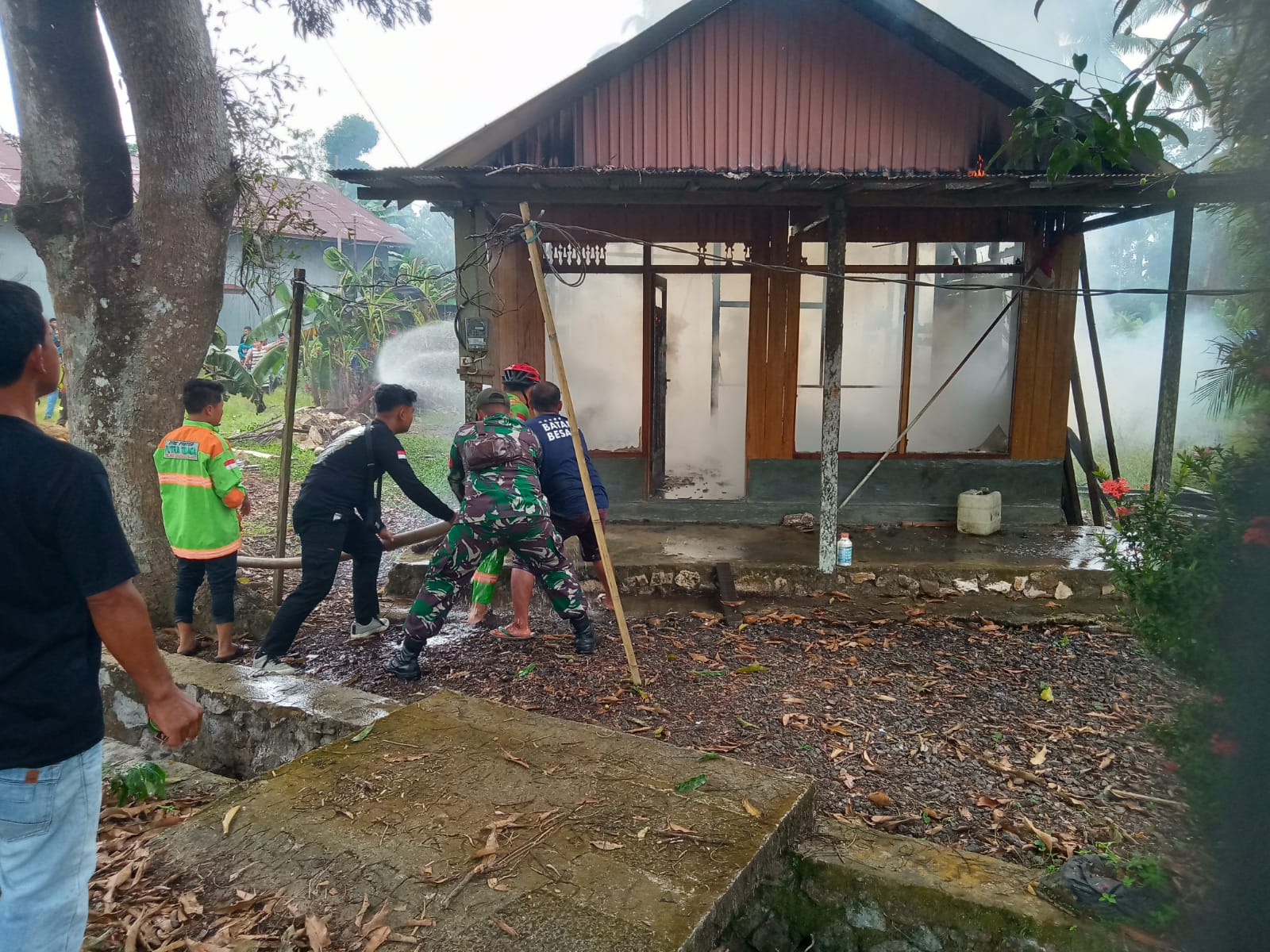 BARABAI, BUSERJATIM.COM GROUP – Personel Koramil 1002-04/Labuan Amas Selatan dipimpin Plh. Danramil Pelda Adie Riyanto bersama anggota turut membantu memadamkan kebakaran yang melanda dua unit rumah warga di Desa Pantai Hambawang Timur, RT 02 RW 01, Kecamatan Labuan Amas Selatan, Kabupaten Hulu Sungai Tengah (HST), Selasa (26/8/2025) sekitar pukul 10.43 Wita.