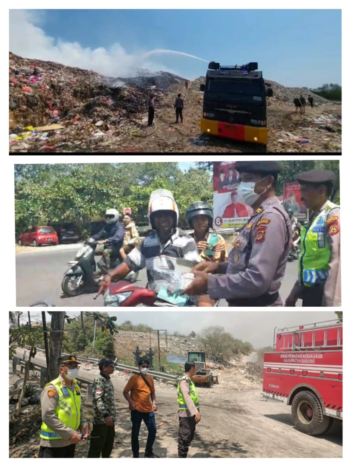 Selain itu personel Polri dan instansi terkait melakukan pembagian masker kepada masyarakat dan pengguna jalan yang melintas di seputaran Suwung.