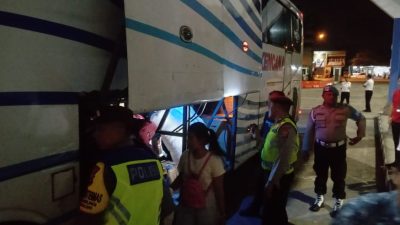 Pemeriksaan barang bawaan penumpang yang ada di bagasi bus dan Pemeriksaan identitas penumpang