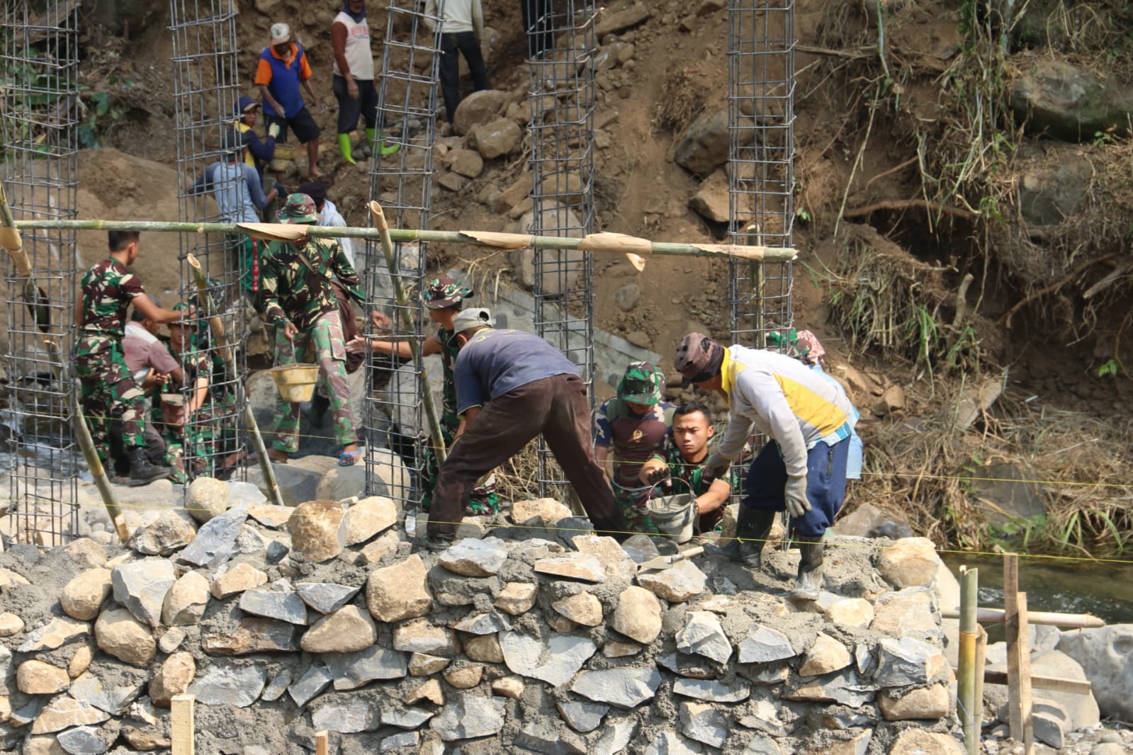 Madiun – Semangat kebersamaan anggota satgas TMMD Reguler ke 117 Kodim 0803/Madiun dengan masyarakat Desa Kare dan Desa Kepel, Kecamatan Kare, Kabupaten Madiun, Jawa Timur, begitu luar biasa dalam pengerjaan pembangunan jembatan yang menghubungkan kedua desa tersebut.