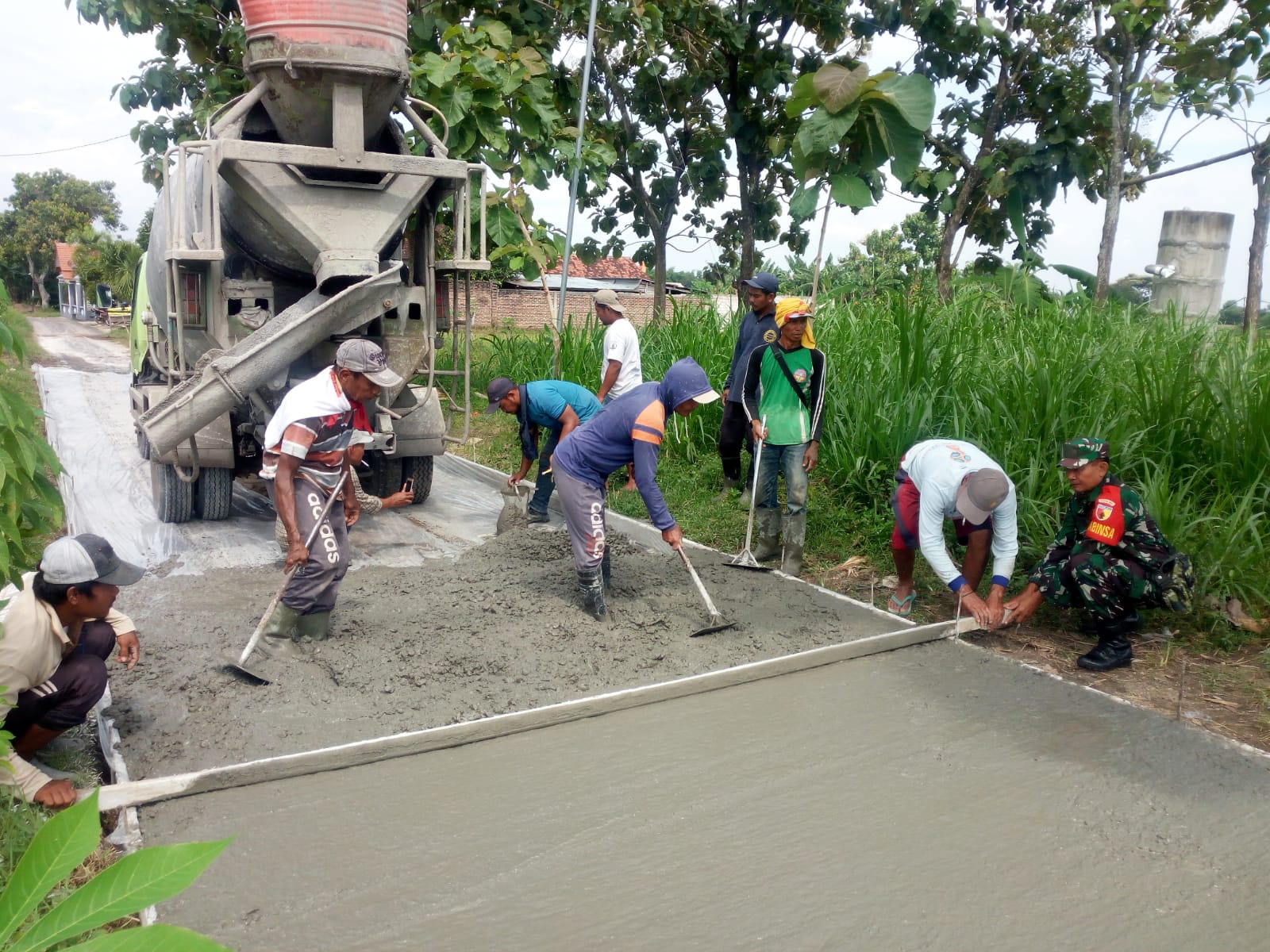 Terlihat warga sangat antusias dalam melaksanakan kegiatan kerja bakti pengecoran jalan desa, sehingga dapat meringankan pekerjaan dan memperlancar akses jalan antara desa.