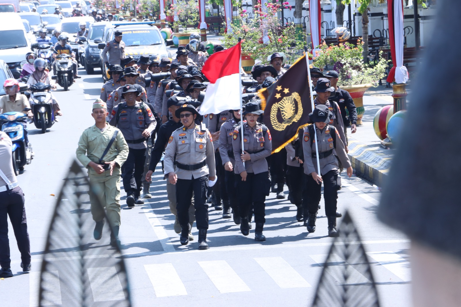 Kota Madiun,BUSERJATIM.COM GROUP – Masih dalam rangka suasana HUT Kemerdekaan RI ke 79 dan Hari Juang Polri, Polres Madiun Kota beserta jajaran dan Perwakilan dari Batalyon Brimob C Polda Jatim gelar apel bintra dan napak tilas.