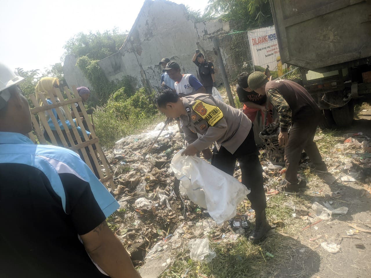 Kerja bakti Bhabinkamtibmas kertawinangun Polsek Kedawung Polres Cirebon Kota Bersihkan sampah selokan