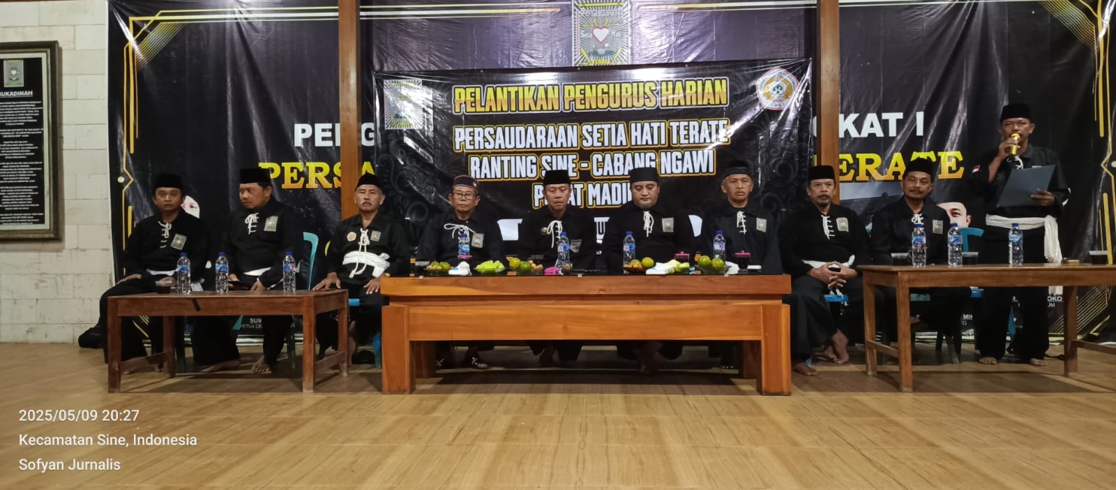 NGAWI, BUSERJATIM. COM — Ketua Persaudaraan Setia Hati Terate (PSHT) Cabang Ngawi, Dr. Dwi Rianto Jatmiko, MH., M.Si., melantik pengurus harian PSHT Ranting Sine periode 2025–2028. Acara pelantikan berlangsung di Padepokan PSHT Ranting Sine, Dusun Jetak, Desa Sumberejo, Kecamatan Sine, Jumat (9/5) malam.