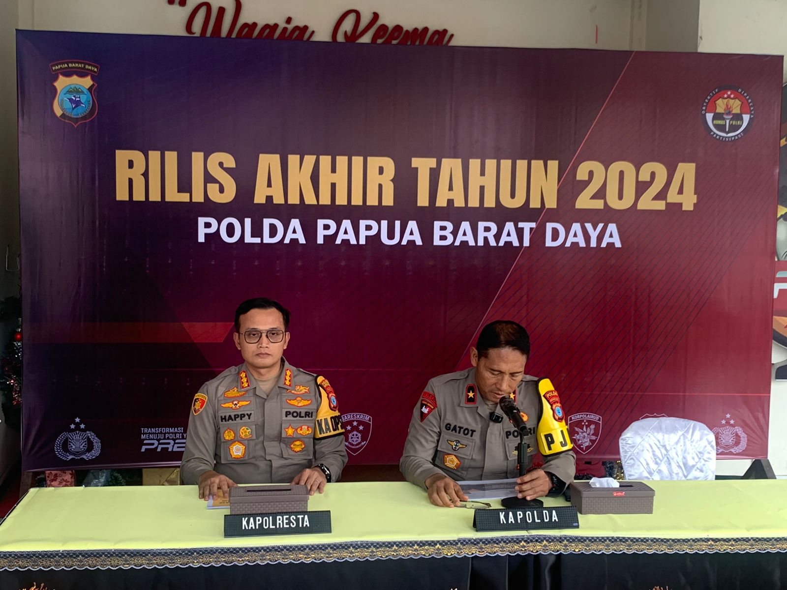 KOTA SORONG PBD, BUSERJATIM.COM GROUP – Dalam evaluasi tahunan yang disampaikan oleh Kapolda Papua Barat Daya, Brigjen Pol Gatot Haribowo, S.IK, M.A.P., di dampingi Kapolresta Sorong kota Kombes pol Happy Perdana, S.IK, MH, dalam rilisnya bahwa sejumlah kemajuan telah dicapai oleh Polda Papua Barat Daya sepanjang tahun 2024. Meski menghadapi tantangan dalam hal sumber daya manusia, polisi di wilayah ini berhasil mencatatkan penurunan signifikan dalam tingkat kejahatan dan meningkatkan keamanan di berbagai sektor.