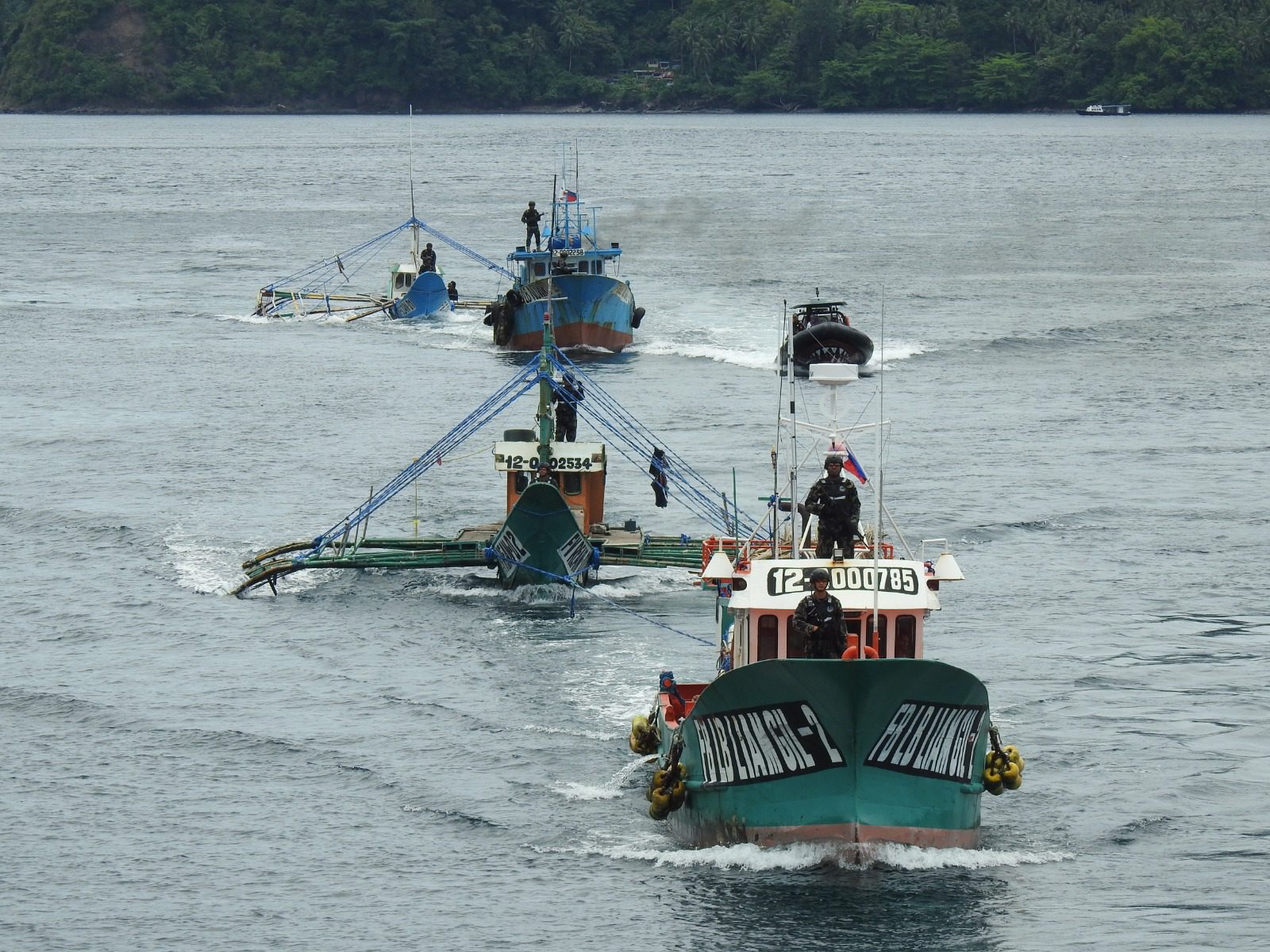 Adin melanjutkan bahwa total terdapat 13 awak kapal berkebangsaan Filipina yang diamankan aparat bersama sejumlah barang bukti, termasuk ikan hasil tangkapan sebanyak kurang lebih 500 kg yang terdiri dari tongkol, cakalang hingga cumi. Selanjutnya, kelima kapal dikawal menuju Pangkalan PSDKP Bitung untuk proses penyidikan lebih lanjut.