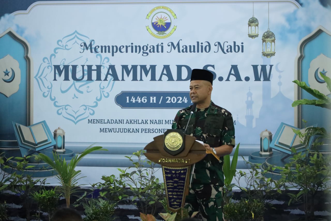 Allah Subhanahu Wata’ala telah mengutus Nabi Muhammad Shalallahu Alaihi Wassalaam sebagai uswatun hasanah, role model atau suri teladan dengan akhlakul karimah, akhlak mulia yang wajib kita ikuti.” Pinta Pangkoarmada III.