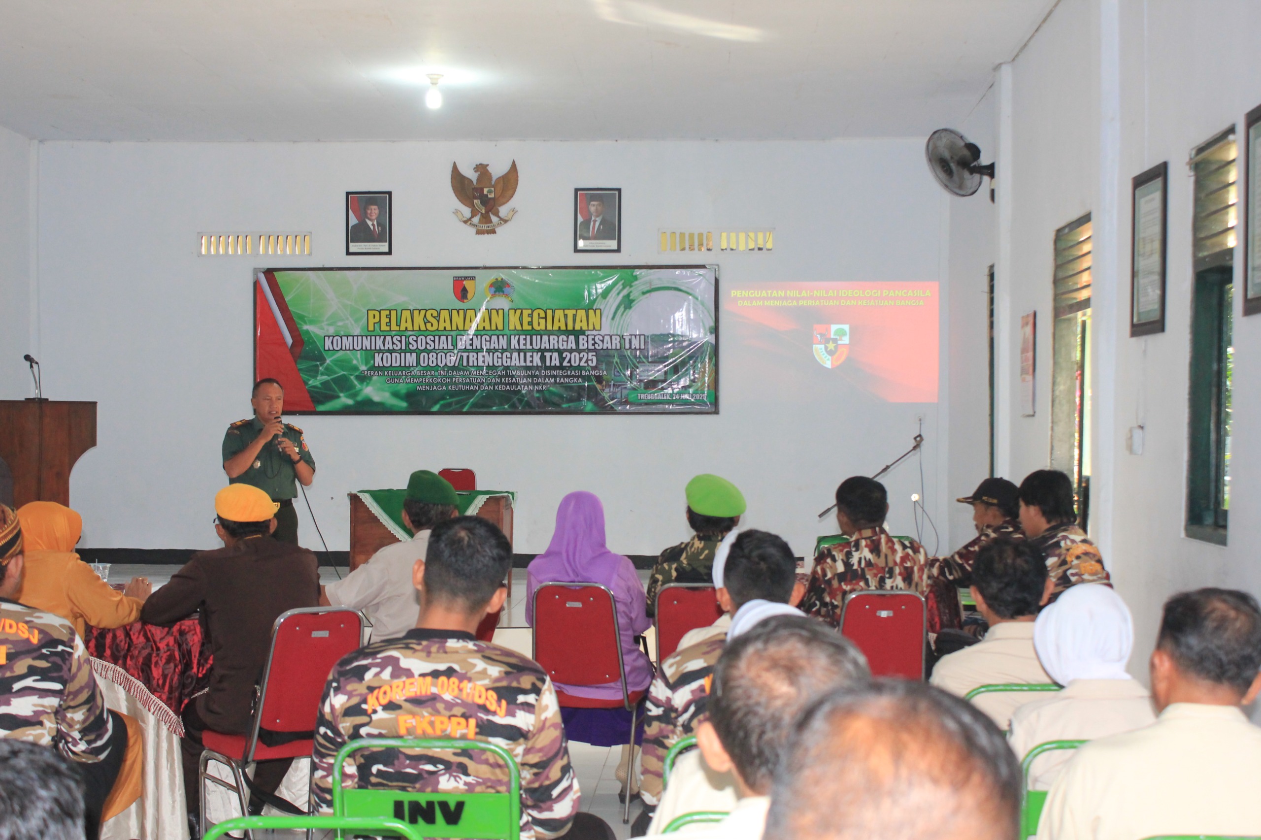Trenggalek, Buserjatim.com – Dalam upaya memperkuat semangat persatuan dan menjaga keutuhan Negara Kesatuan Republik Indonesia (NKRI), Kodim 0806/Trenggalek menggelar kegiatan Komunikasi Sosial (Komsos) bersama Keluarga Besar TNI (KBT), dengan mengusung tema, “Peran Keluarga Besar TNI Dalam Mencegah Timbulnya Disintegrasi Bangsa Guna Memperkokoh Persatuan dan Kesatuan Dalam Rangka Menjaga Keutuhan dan Kedaulatan NKRI.”